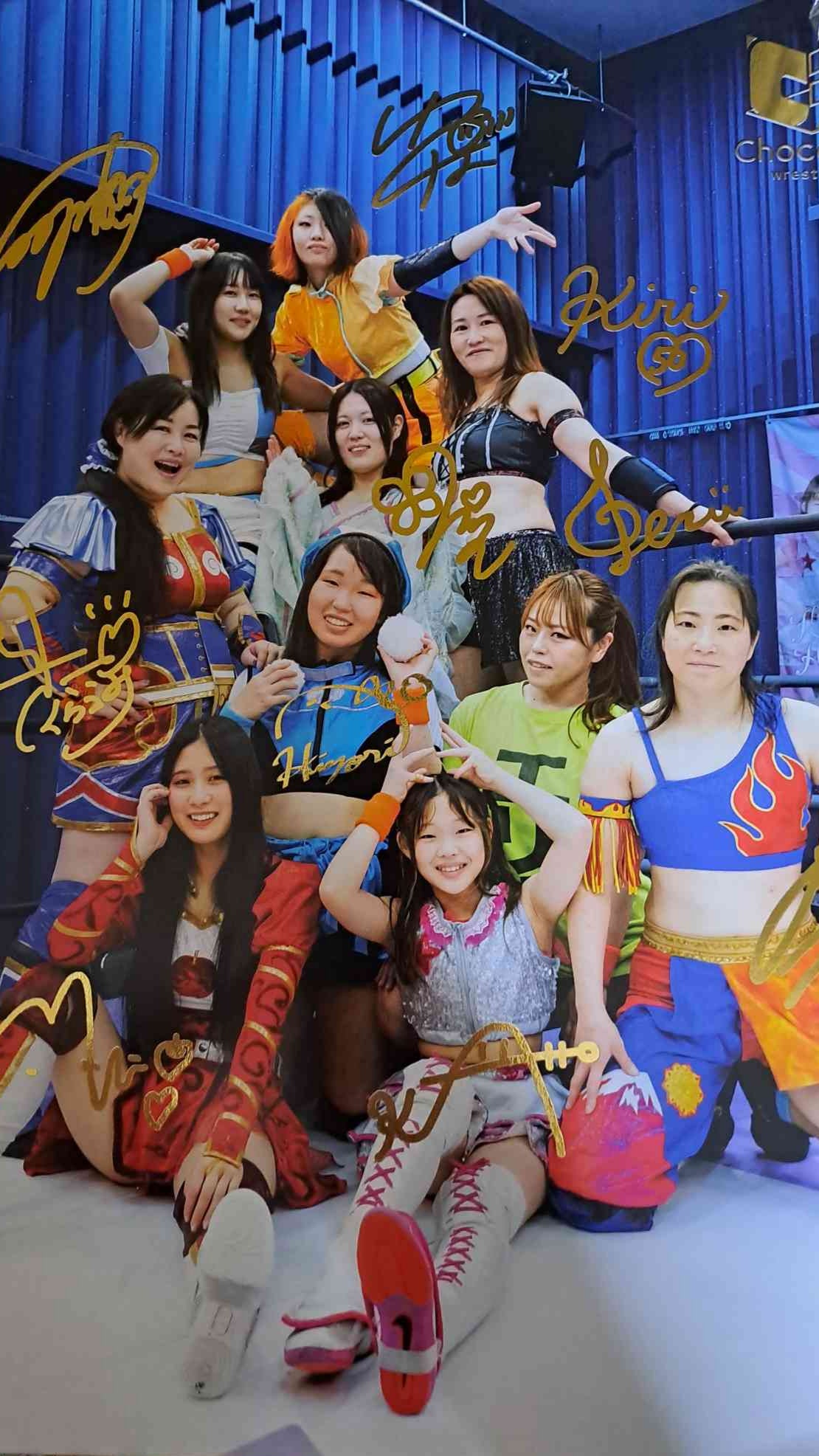 Un portrait unique : ce portrait réunit les signatures de toutes les catcheuses et catcheurs du roster ChocoPro. Une pièce rare qui capture l’esprit familial et créatif de la promotion indépendante japonaise, connue pour ses shows intimistes et son ambiance conviviale.